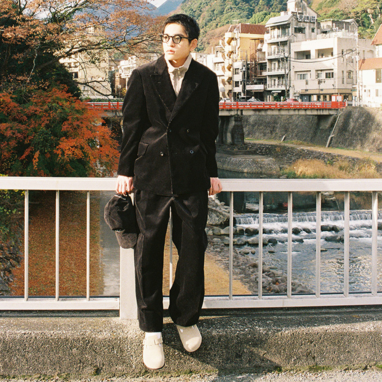 その他に同素材英国的な見た目のダブルジャケット「Paul Jacket」も1型展開されます。パンツとジャケットを合わせることで、上品でクラシカルなムードを持つセットアップとして着用可能。