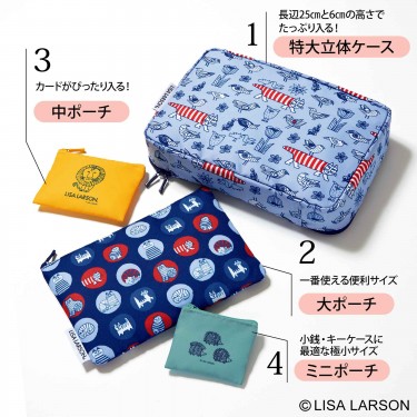 リサ・ラーソンの代名詞とも言える猫のマイキーや愛らしいハリネズミなどリサ・ラーソンの人気モチーフをあしらったポーチは、整理整頓しやすく、あらゆるシーンで活躍してくれます。