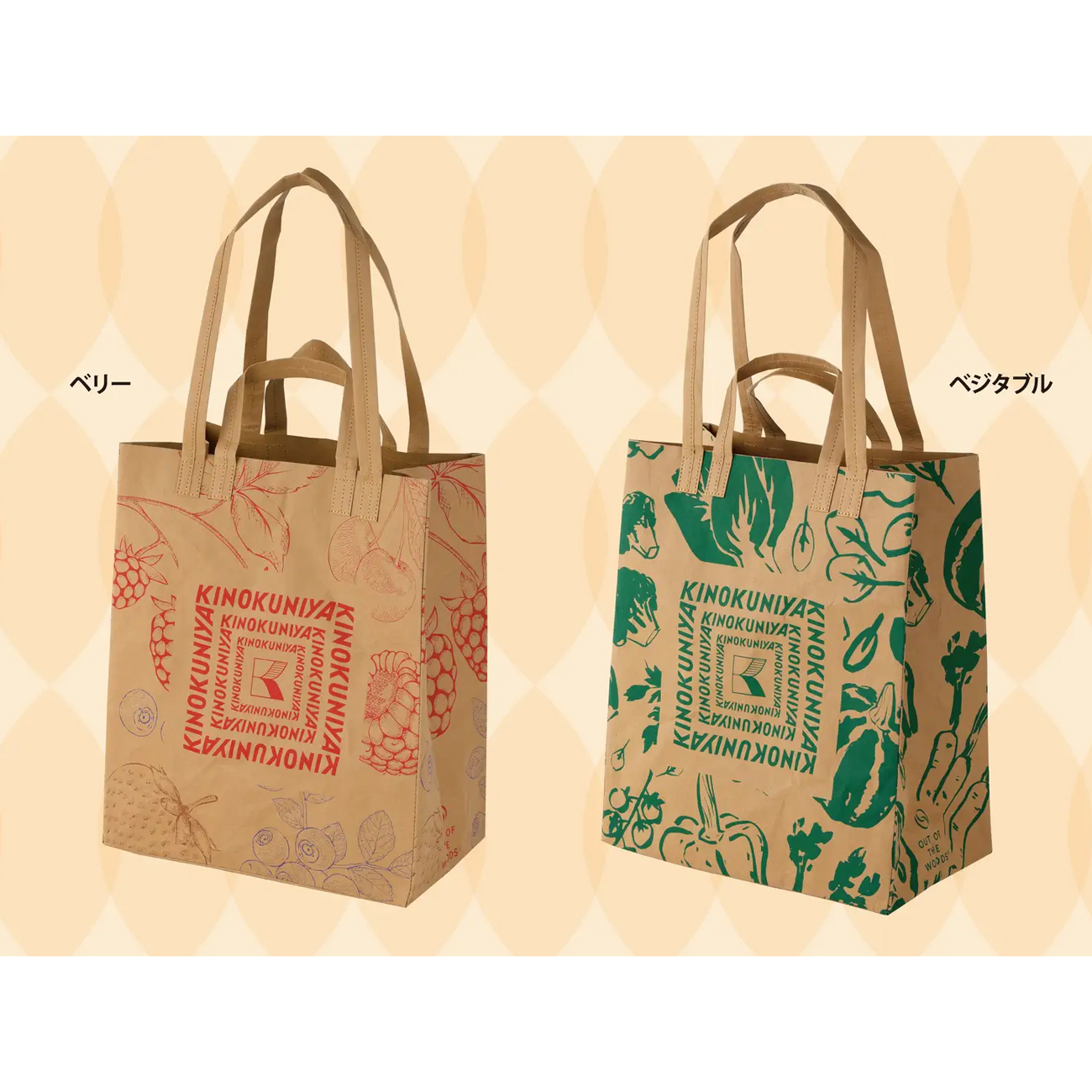 食のモチーフを取り入れたベジタブル柄とベリー柄の2種類をラインナップ。マチがあるので、お弁当など安定して持ち歩けるのもうれしいポイントです。