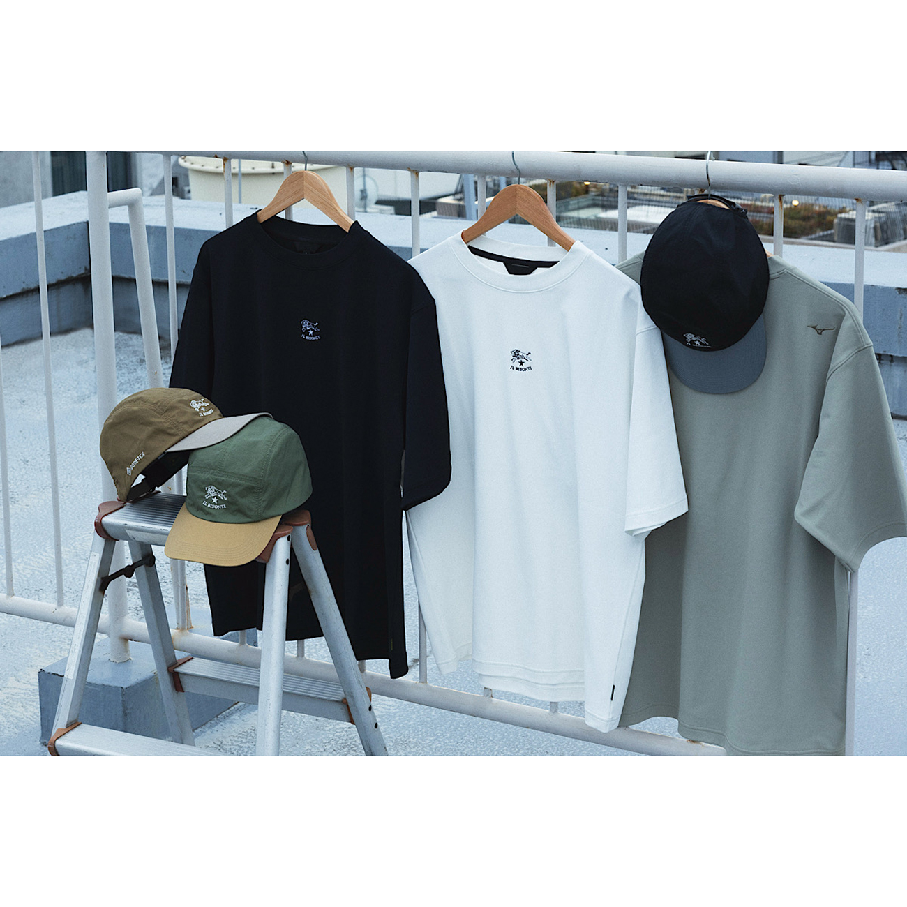 デイリーに活躍するTシャツには、ミズノ独自の機能素材「アンチスウェット」を投入。特殊な糸構造で編み上げられた生地は、吸汗速乾性や防透性に加え、最高値のUVカット(SPF50+)機能を備えており、汗ばむ季節でも常に快適なコンディションをキープします。