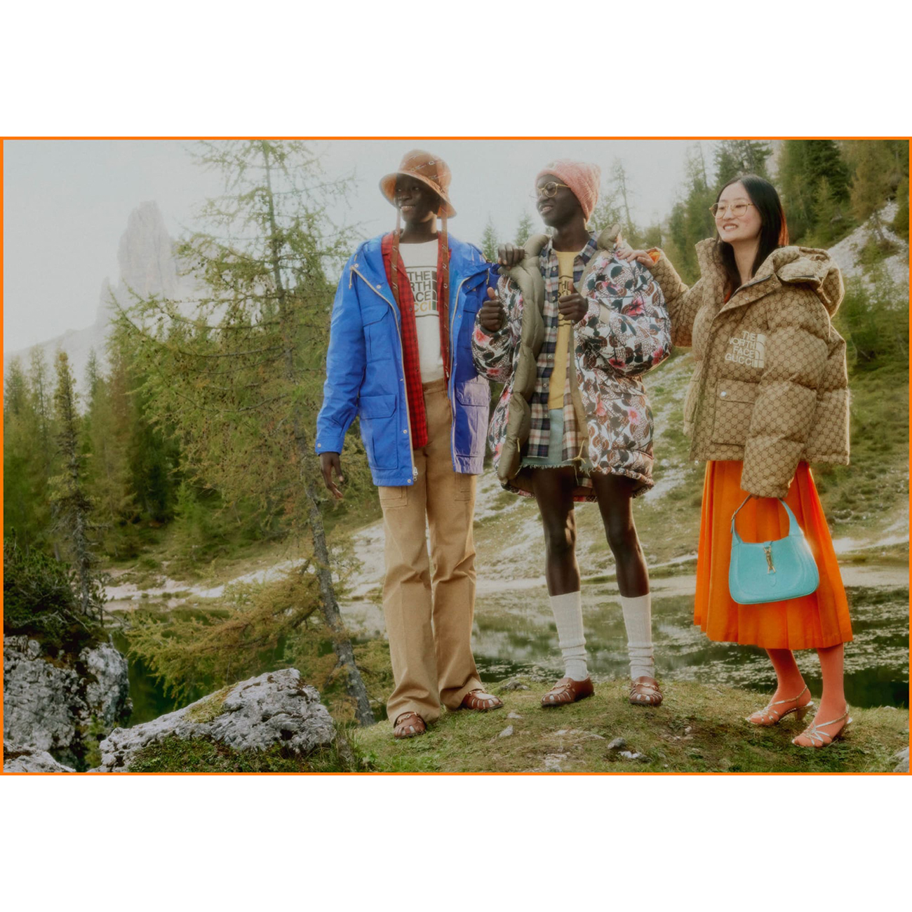 メンズとウィメンズのウェア、アクセサリー、ラゲージ、シューズに加え、テントや寝袋などアウトドア製品もラインナップ。環境保全のために、ラゲージには再生素材「ECONYL®」から作ったナイロンを採用し、生態系や環境への配慮も忘れない。広告ヴィジュアルはフォトグラファーのダニエル・シェアがアルプス山脈で撮影を行った。アイテムのカラーパレットは、1970年代のザ・ノース・フェイスの素材を参考にしたという。