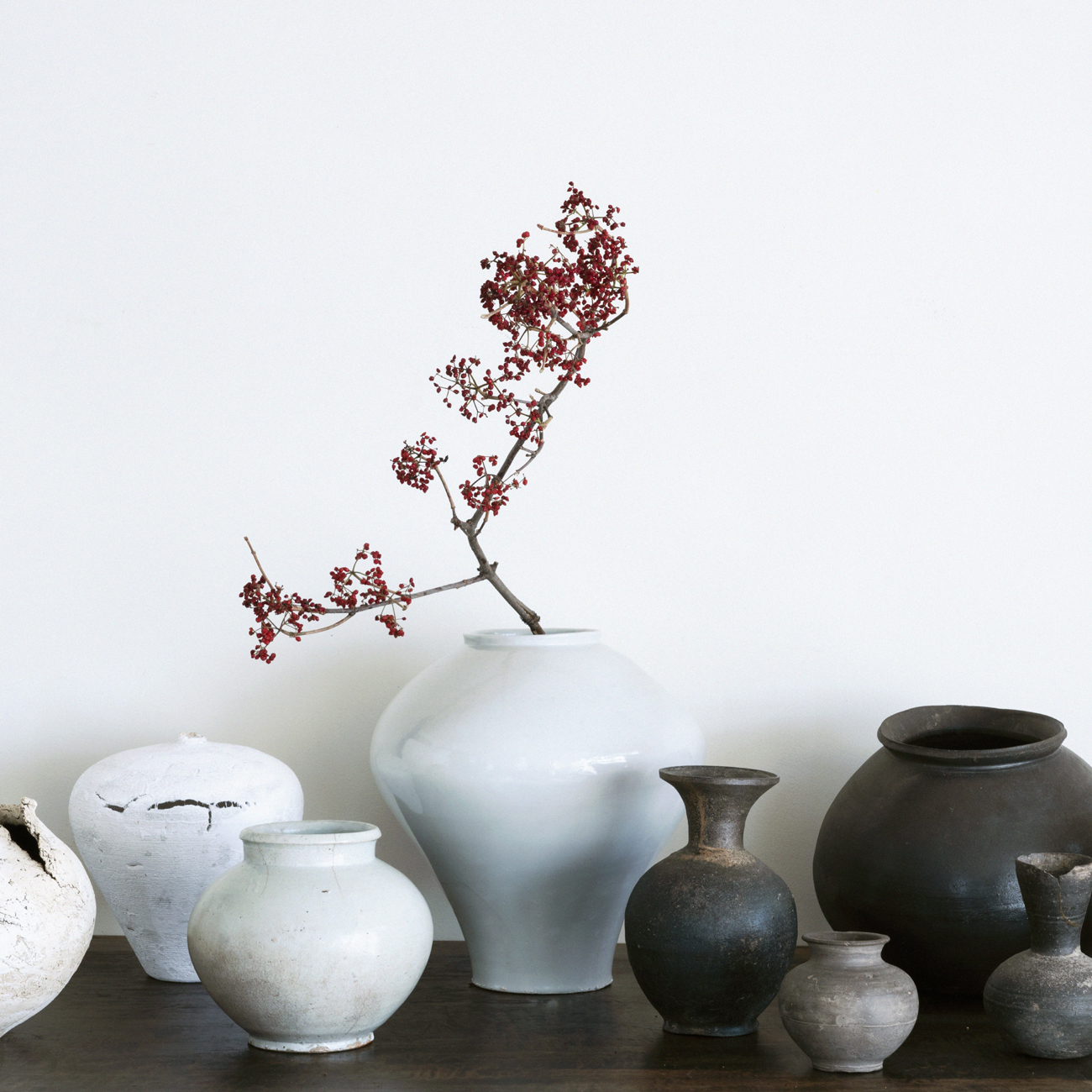 日本、中国、韓国、インド、アフリカと様々な国で作られた約150点におよぶ“白と黒”の器を展示。李朝、新羅、明、古墳時代、古伊万里、そして現代と作られた時代背景と形も異なり、同じ白と黒といってもバリエーション豊かだ。白と黒は「素材、質感、光影、時間、空間」によって色々な表情を感じることができる特別な色。無彩の奥に宿る豊かさをじっくりと楽しみたい。