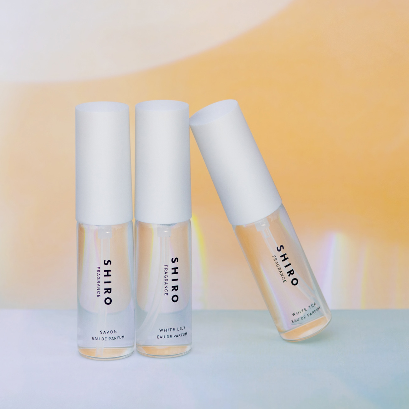 フレグランスシリーズで人気のオードパルファン「サボン」「ホワイトリリー」「ホワイトティー」が3種セットになって新登場。全ての香りを少しずつ試したい、外出先でも使いたいという要望から生まれたミニサイズ(10mL)のセットだ。