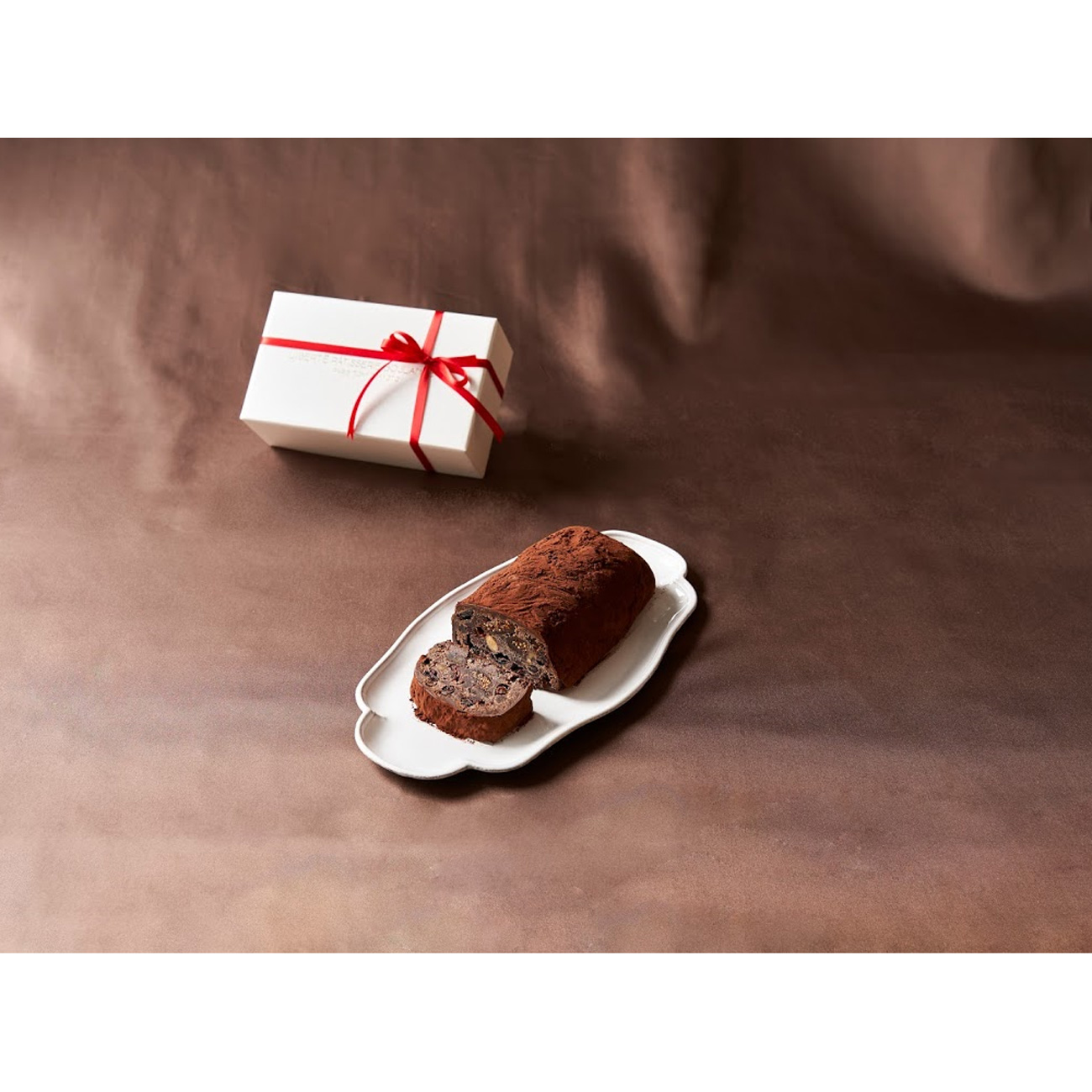 2013年にパリ10区にフラッグシップをオープンし、2018年に日本へ上陸。いちじくやレーズン等、8種類のドライフルーツやナッツに合わせ、ブランデーや赤・白ワインなどお酒を分けてじっくり漬け、ヴァローナのチョコレートと自家製ルヴァン入りの生地に練り込み焼き上げ、さらにチョコレートとココアでコーティングした大人のヴァレンタイン シュトーレン。