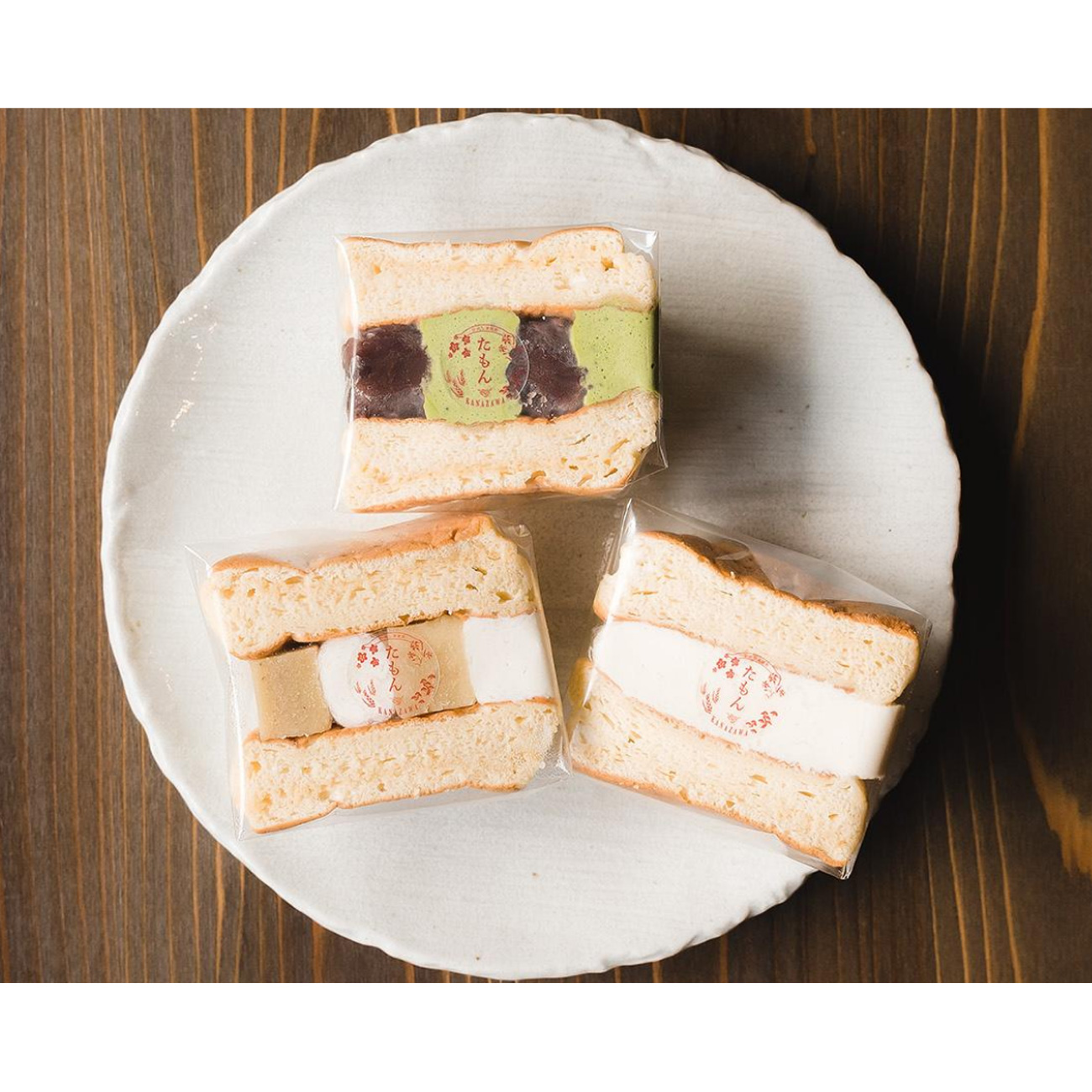 「たもん(多聞)」とは多くの良い情報を聞き、心に留めるという意味。かねてより金沢の地に愛着のあったオーナーである女優のMEGUMIが仕事を通じて出逢ったクリエーターとのコラボレーションでメニュー開発からデザインまで行っている。焼き上げる鉄板から特注し、試行錯誤の末作られた、冷凍、冷蔵しても ふわふわな食感、美味しさが続く、オリジナルのパンケーキに、一つ一つ手作業でクリームを絞ってサンドした。味は「生クリーム&カスタード」「国産あずきと抹茶」「五郎島金時」の3種類。