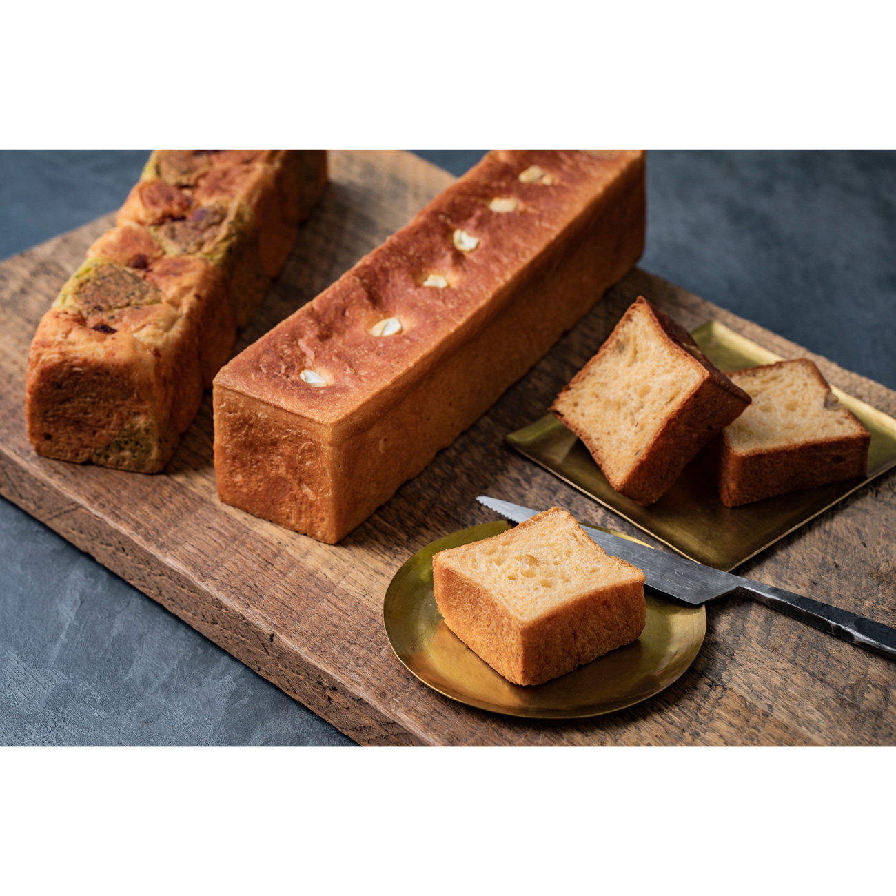 フランス語で「点と線」をあらわす”ポワン・エ・リーニュ”。軽くても芳醇なテイストを持つ完全オリジナルのパンを追求し、独自に開発した国産の良質な小麦をさらに様々な素材と自家ブレンドし、オールスクラッチ製法によりひとつひとつ丁寧に焼き上げた。隠し味にマスカルポーネクリームを練り込んだコクの深い極上食パン。