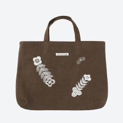 皆川明氏が描きおろしたイラスト柄の布バッグ「paperzoo bag」は、同梱されているフロッキーシールをつけることで、自分だけの「ミナ ペルホネン」バッグが完成。ぺぱぷんたすのロゴのちぎり絵がデザインされたジャガード織りのリボンハンドル、スナップボタン、刺繍、そして、コンパクト折り畳んで収納できる裏のポケットなど、細部にまでこだわって作られている。