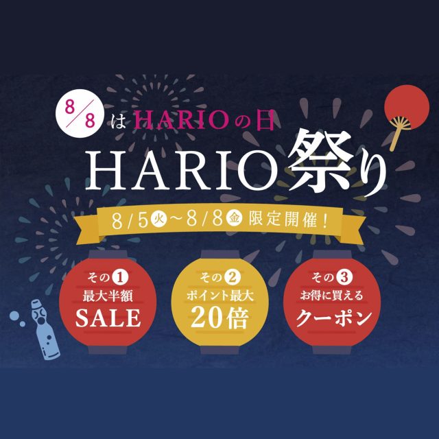 ニュースハリオがお得な「HARIO祭り」開催!半額セール&ポイント20倍【8月8日限定】